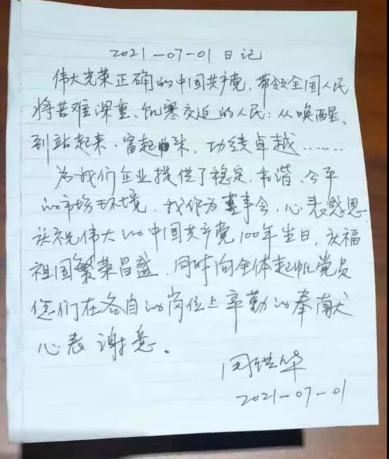 为我们企业提供了稳定、和谐、公平的市场环境。我作为董事会,心表感恩,庆祝伟大的中国共产党100年生日,庆福祖国繁荣昌盛。同时,向全体起帆党员同志们在各自的岗位上辛勤的奉献心表谢意。