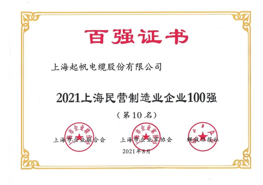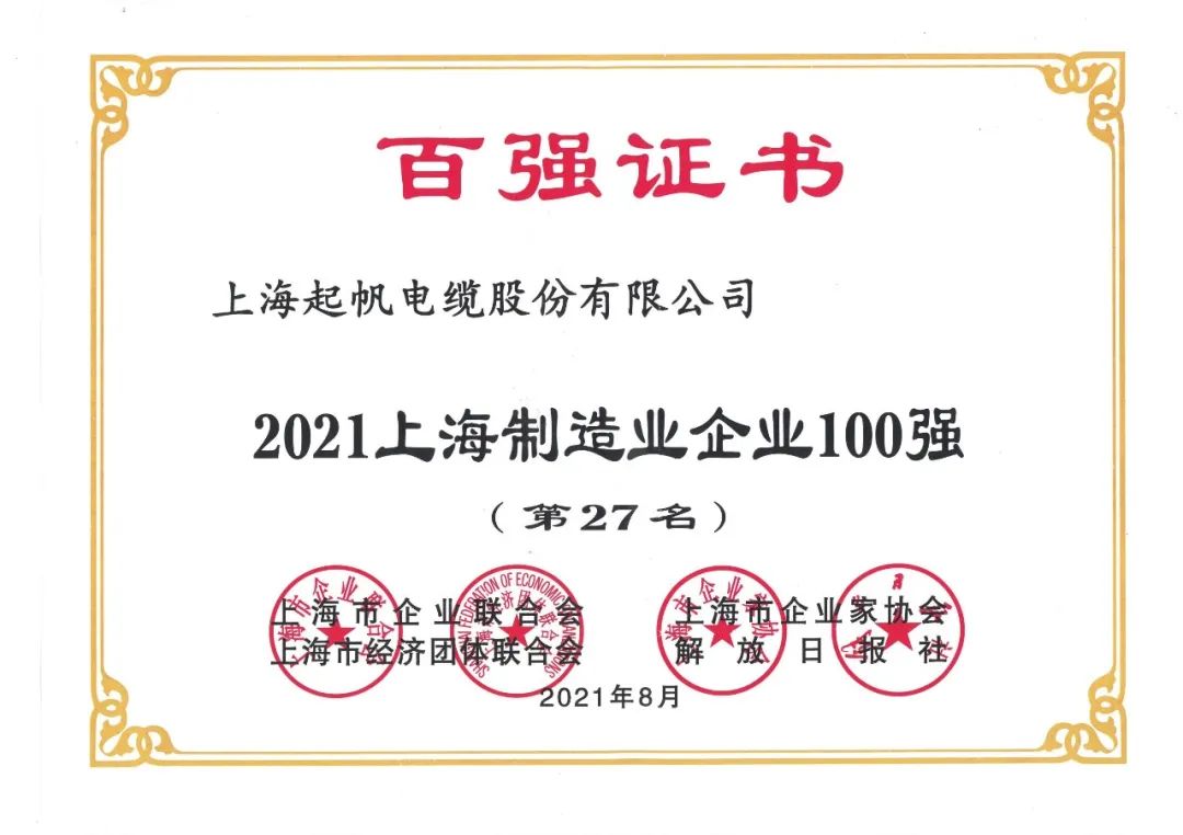 2021上海企业百强名单出炉,起帆电缆继续前进